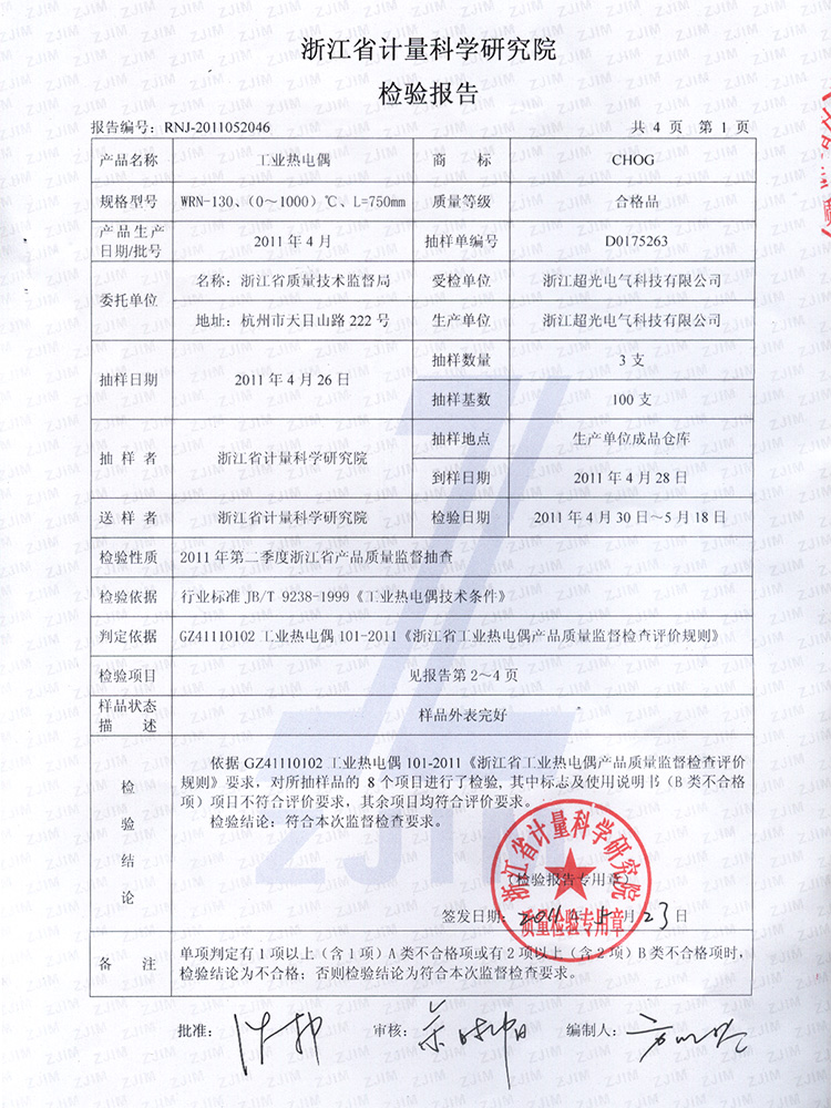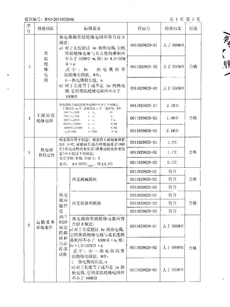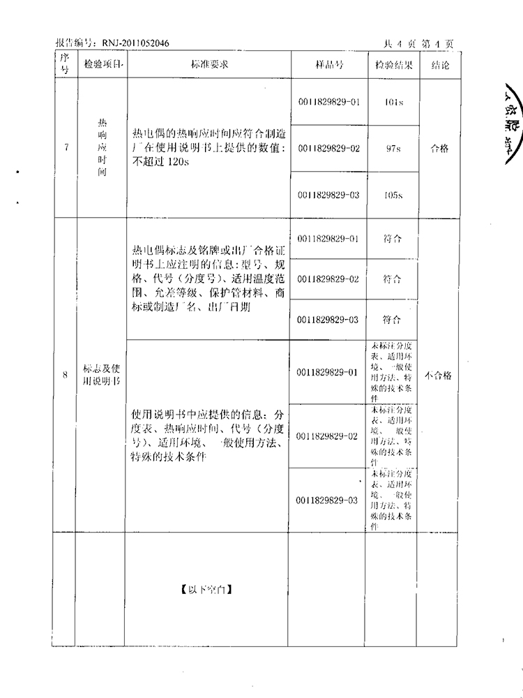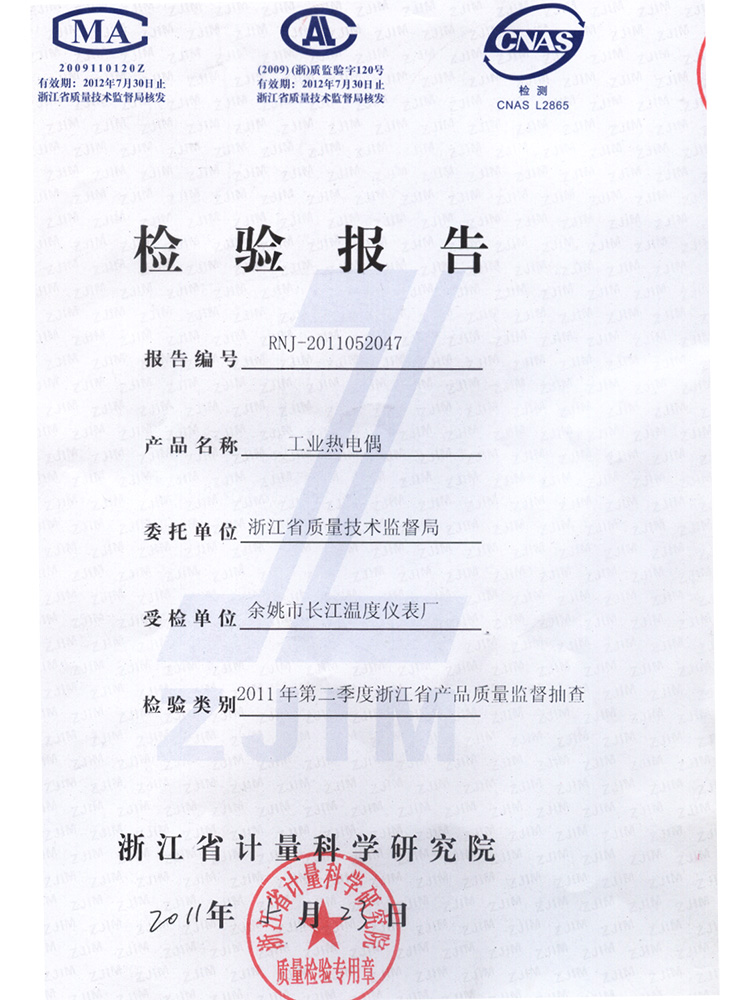 2011年第2季度檢測報告(工業熱電偶)