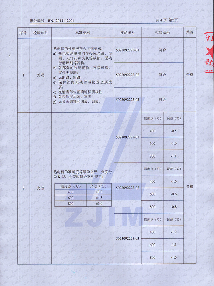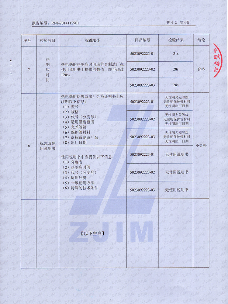 2014年省檢報(bào)告(工業(yè)熱電偶)