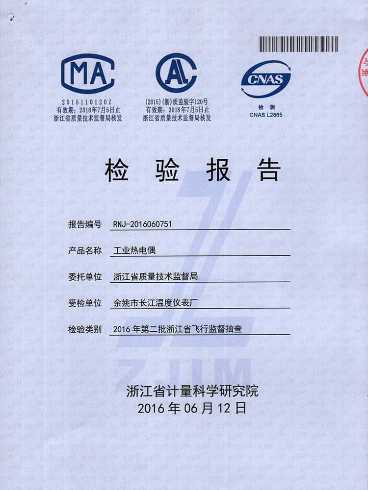 2016年工業(yè)熱電偶檢驗(yàn)報(bào)告