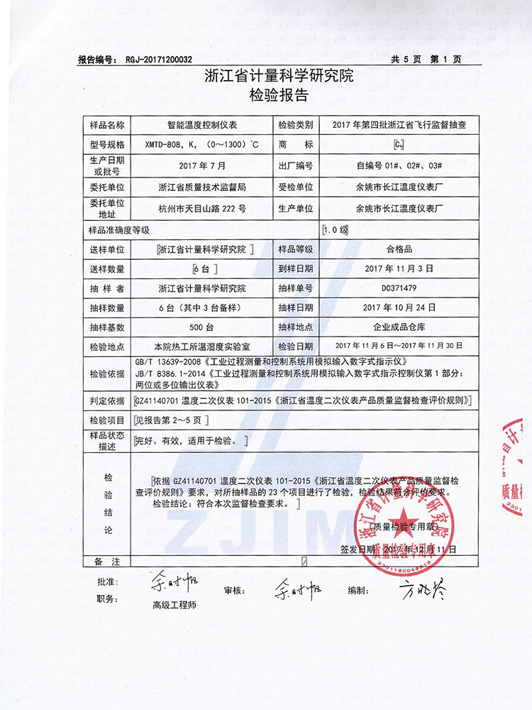 2017年智能溫度控制儀表檢驗(yàn)報(bào)告